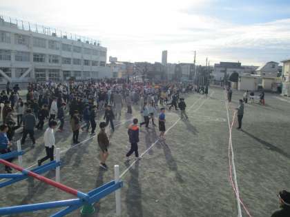 今朝は、集会委員によるゲーム集会を校庭で全校児童で行いました。