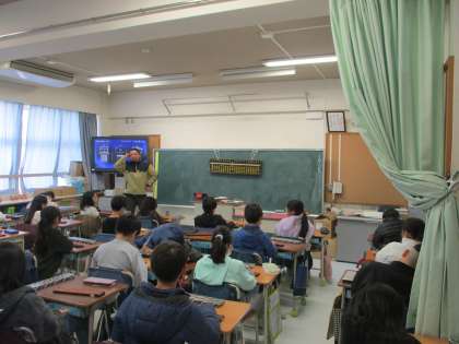 3年生の教室では、算数でそろばんの学習をしていました。