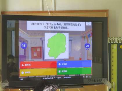 今日は、タブレット端末を使い、都道府県クイズをしていました。