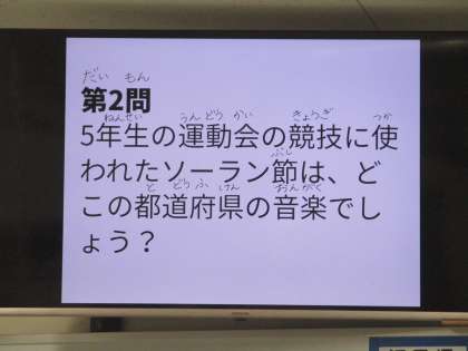今日の朝会は児童集会委員がテレビ放送でゲーム集会を行いました。
