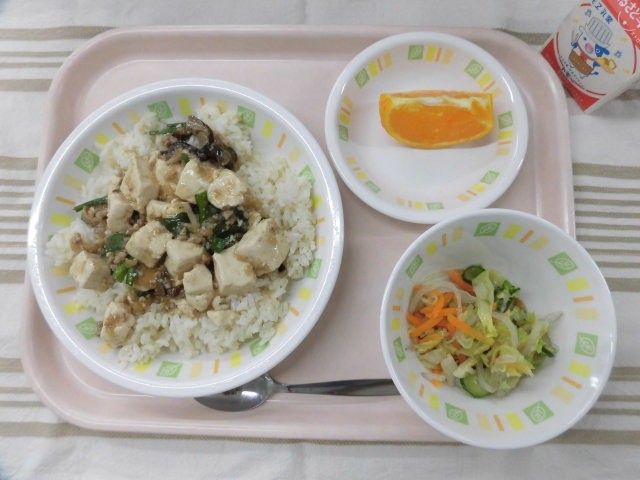麻婆豆腐丼 中華サラダ デコポン 牛乳