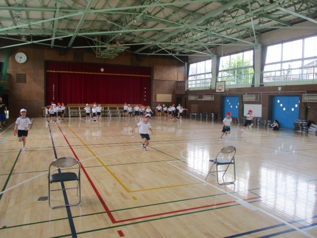 クラスを4つのチームに分けて、友達と協力してリレーの活動をしていました。友達を応援したり、声を掛け合ったり、協力しながら学習することができていました。