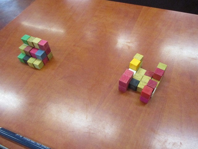 直方体と立方体についての学習で、1㎤の大きさのブロックを使って、学習を進めていました。
