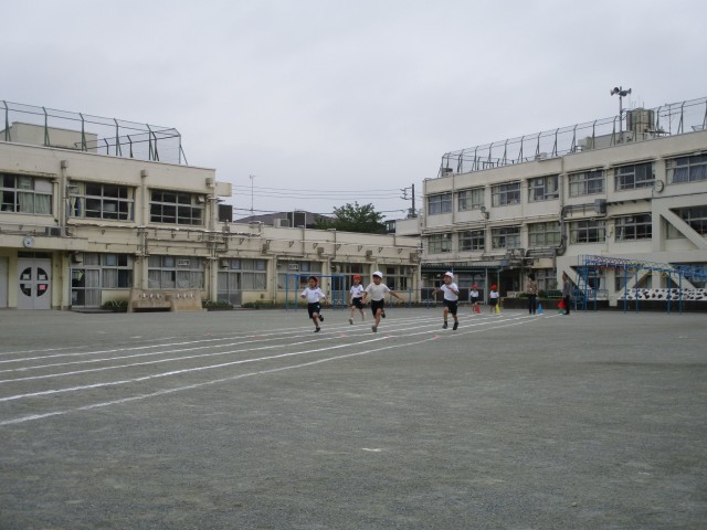 校庭では1年生が体育の学習をしていました。