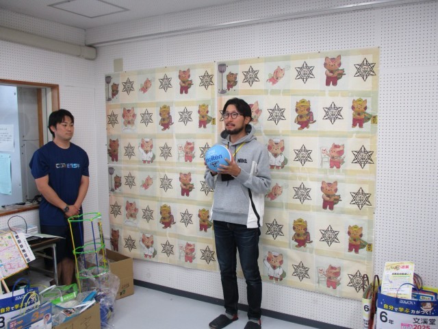 続いてPTAの方から、ボールの寄贈についてお話がありました。昨年度のボロ市での収益金で購入していただいたボールです。各学級に配り、休み時間に活用させていただきます。ありがとうございました。