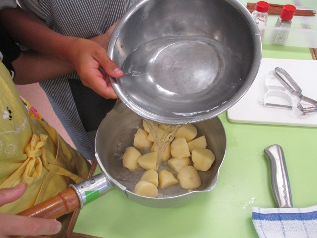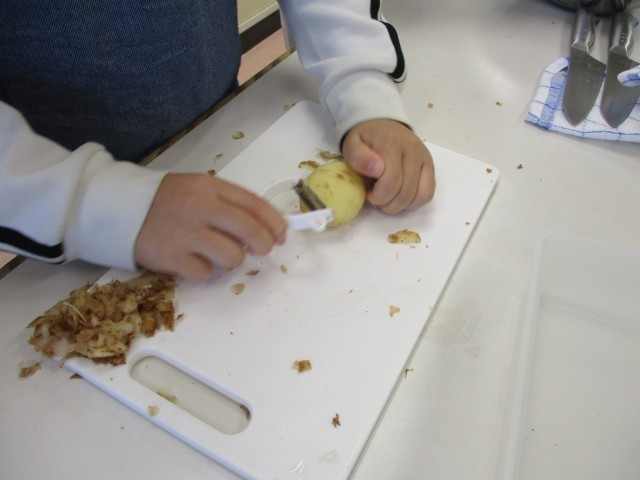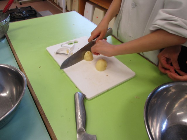 家庭科室では、5年生がじゃがいもを使った調理実習をしていました。