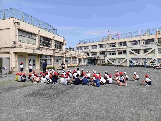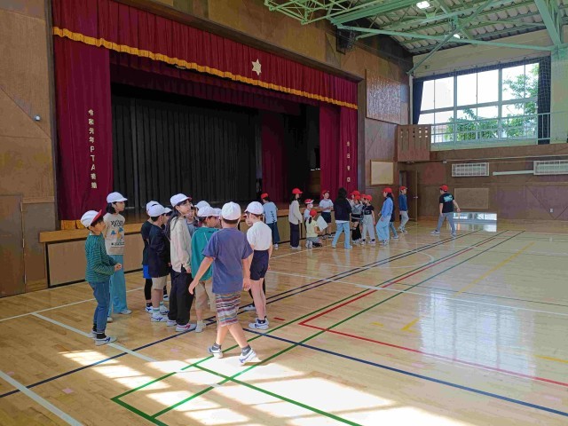 今日は3年生と5年生が校庭と体育館で異学年交流の時間を過ごしました。