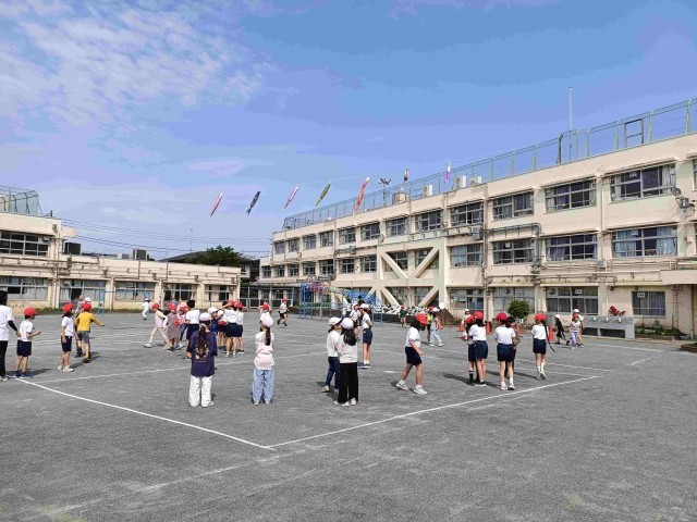 弦巻小学校では、異学年交流を進めるために、朝の時間、兄弟学級で遊ぶ時間を設定しています。