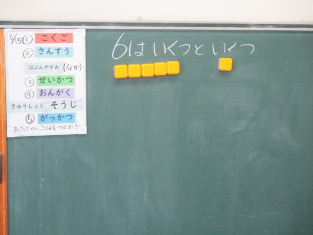 絵から「6は〇と〇を合わせた数」と答えていきます。