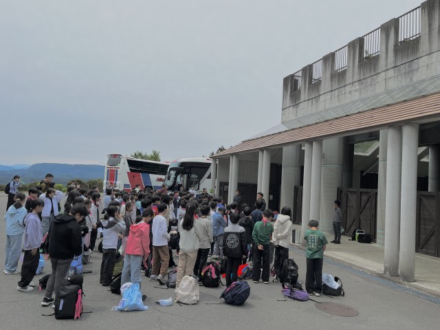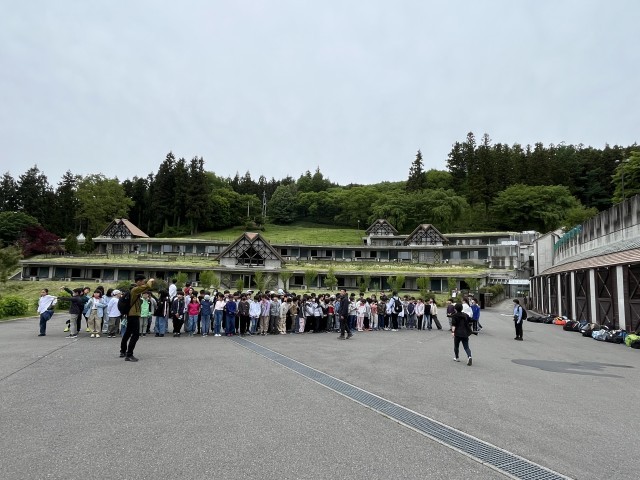 なかのビレジに到着しました。開室式を行い、学年写真を撮りました。みんな元気です。