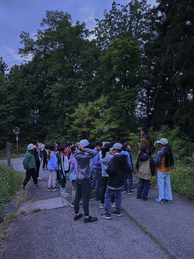 夕食の後は、クラスごとに近くを散策しました。日没は19時前なので、まだそんなに暗くはありませんが、昼間よりはだいぶ涼しくなりました。