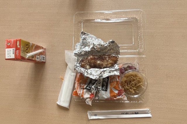 二日目の昼食は、おにぎり弁当です。なかのビレジの食堂でいただきました。デザートは、かわばジェラートです。午後は、天狗山公園でマスのつかみ取りを行います。
