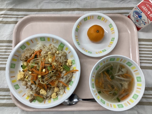 ビビンバ 春雨スープ 冷凍みかん 牛乳