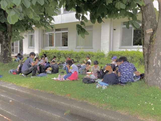 朝は雨でしたが、こちらはやみました。外でお弁当を食べることができました。