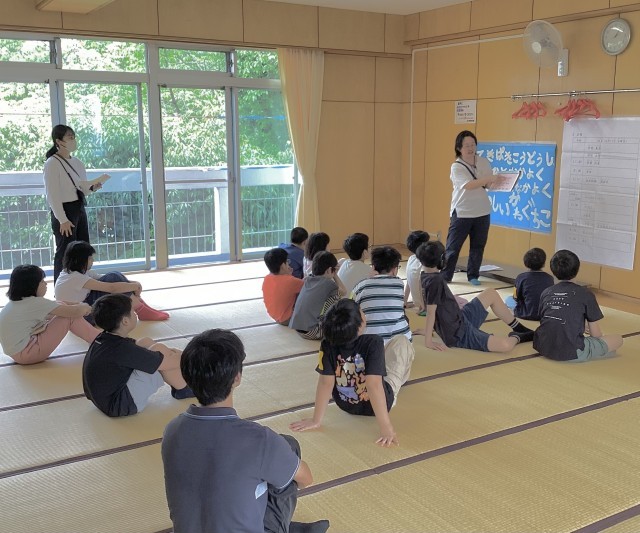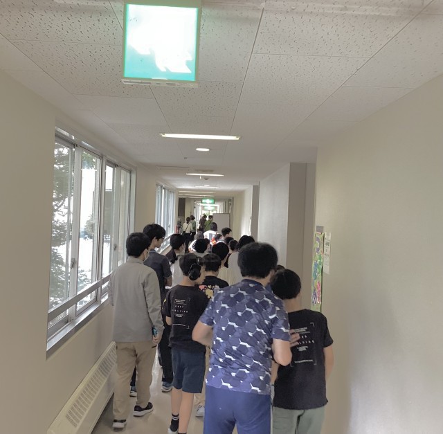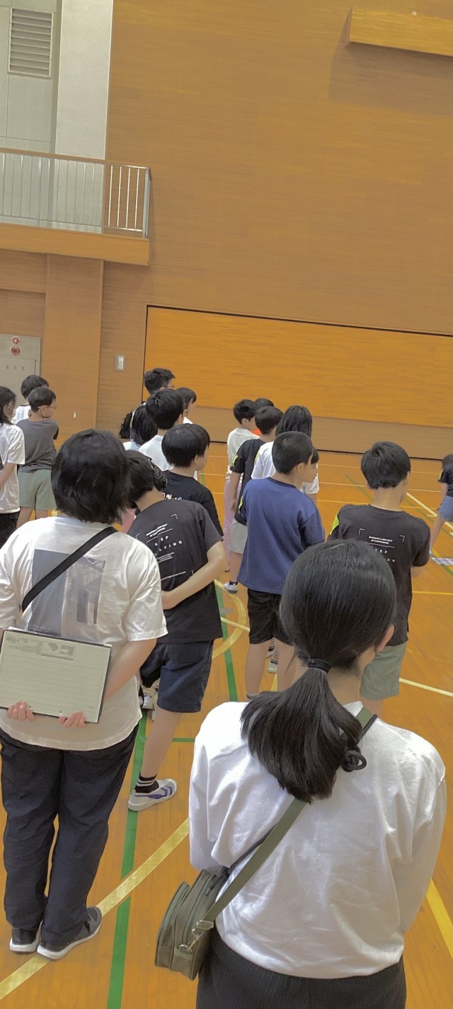 部屋に入り、荷物整理をして、これからの予定を確認しました。避難訓練で体育館へ移動して開室式を行いました。
