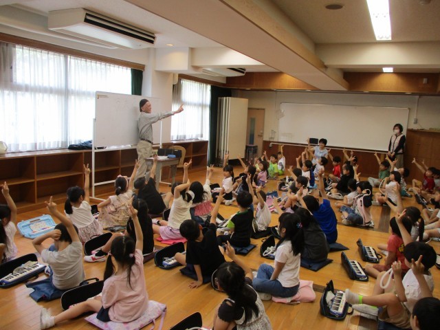 楽器の特徴や、どんな音を出すと良いか、実際に試しながら鍵盤ハーモニカに親しみました。