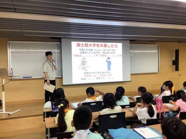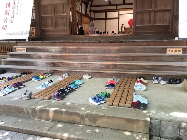 国士舘大学では、講堂を見学しました。子どもたちが靴を自分たちできれいに並べて講堂に入る姿がとても立派でした。