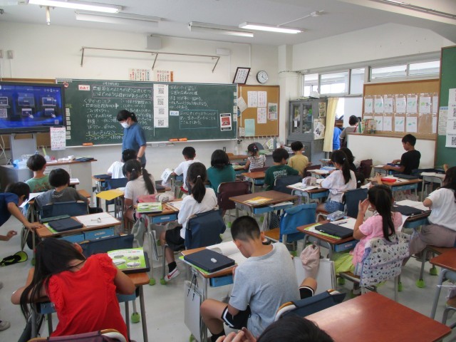 今日は、前回学習した区の公共施設(区役所、区民センターなど)について、どのような役割があるか、タブレットで調べたり、発表したりしました。