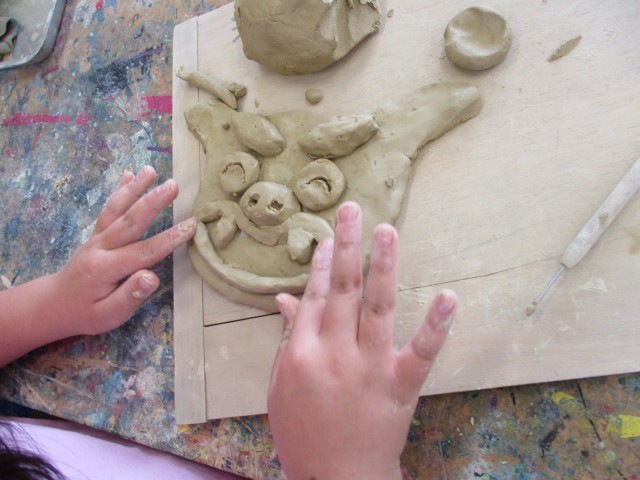 先生と作る際のポイントを確認し、それぞれが自分のシーサーを作っていきます。焼き上がりが楽しみです。