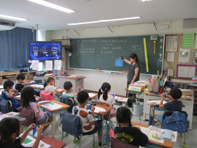2年生の教室では、長方形と正方形について算数の学習をしていました。