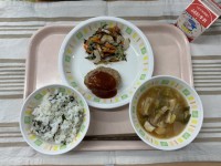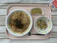 スパゲッティみそミートソース もやしのサラダ ぶどうゼリー 牛乳玉ねぎ(北海道)...