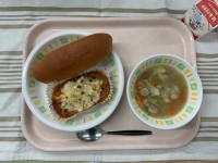 カレーツナトースト 白いんげん豆の田舎風スープ じゃがいもサラダ 牛乳にんじん(...