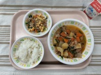 根菜カレーライス キャベツじゃこサラダ 牛乳胚芽米(岩手)じゃが芋(北海道)にん...
