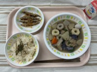 大根菜めし 千草たまご焼き 大根と豚肉の甘辛煮 牛乳米(岩手)大蔵大根・里芋(東...