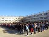 寒い中、朝から駒沢中学校の中学生が弦巻小学校まであいさつ運動に来てくれました。