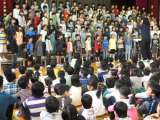 「駒の学び舎」の駒沢中学校の生徒たちが弦巻小学校に来て 子どもたちと朝のあいさつ...