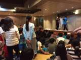 集会の後は、補助員の方々に布団やシーツの畳み方の指導を受けました。また、実行委員...