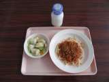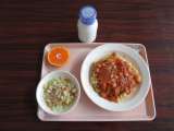 今日の献立 スパゲテイーミートソース 牛乳 ポテト入りフレンチサラダ 使用し...