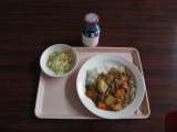 今日の献立 カレーライス ふくじんづけ 飲むヨーグルト コールスローサラダ 使...