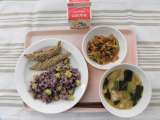 黒米さつまいもごはん シシャモのごま焼き 白菜のみそ汁 切り干し大根の炒め煮 牛...