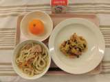 こぎつねうどん 明日葉のかき揚げ みかん 牛乳 ねぎ(新潟) にんじん(千葉)...