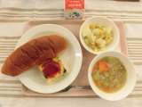 黒砂糖パン チーズ入りオムレツ 野菜スープ カレーポテト 牛乳 玉ねぎ(北海道...