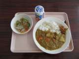 今日の献立 チキンカレーライス ふくじんづけ 乳酸飲料(ジョア) こんにゃくサ...