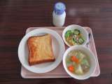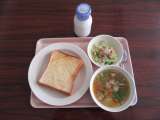 今日の献立 ガーリックトースト 牛乳 白インゲン豆のスープ ツナサラダ 使用し...