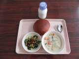 今日の献立 ココアパン 牛乳 さつまいものクリームシチュー ほうれん草のサラダ ...