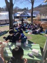 村巡りのゴールです。ガイドの方にお礼の挨拶。あったかくなってきました。