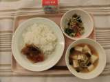 ごはん 鯖の味噌煮 豆腐とわかめのみそ汁 ほうれん草のごま和え 牛乳 米(岩手...