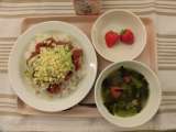 タコライス 小松菜のコンソメスープ いちご 牛乳 米(岩手) 玉ねぎ(北海道)...
