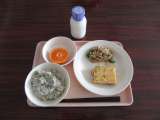 今日の献立 じゃこと青のりのごはん 牛乳 千草焼き 野菜のごま酢かけ くだもの(...