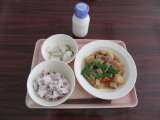 今日の献立 ハニートースト 牛乳 ハンガリーアンシチュー にんじんサラダ 使用...
