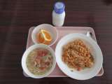 今日の献立 チキンライス 牛乳 たまごスープ くだもの(清見オレンジ) 使用し...