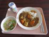 今日の献立 カレーライス 福神づけ 飲むヨーグルト フレンチサラダ 使用した主...