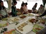 本日は、6年生が卒業を祝うためのバイキング給食をしました。クロワッサンにチキンラ...