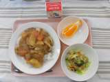 カレーライス 海そうサラダ デコポン 牛乳 米(岩手) 玉ねぎ(北海道) じゃ...