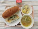 胚芽パン 魚のチーズ焼き ヌードルスープ ジャーマンポテト 牛乳 玉ねぎ(北海...