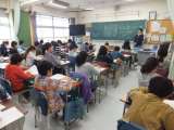 世田谷警察署からお巡りさんが二人来て、交通安全教室が開かれ ました。1年生も真剣...